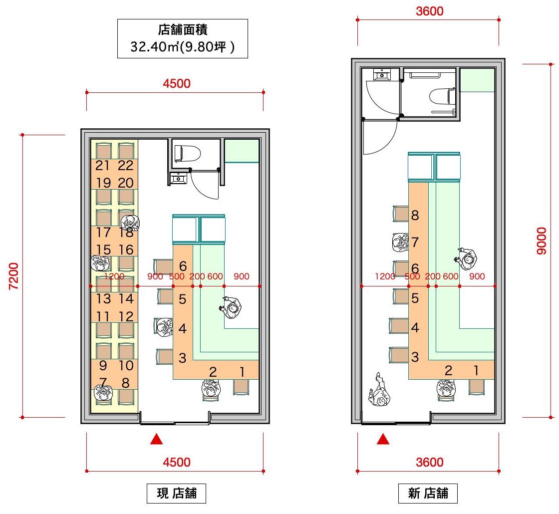 彼らとしては、席数=広さなのだろう。それで32.4m2の店舗面積は譲れない。